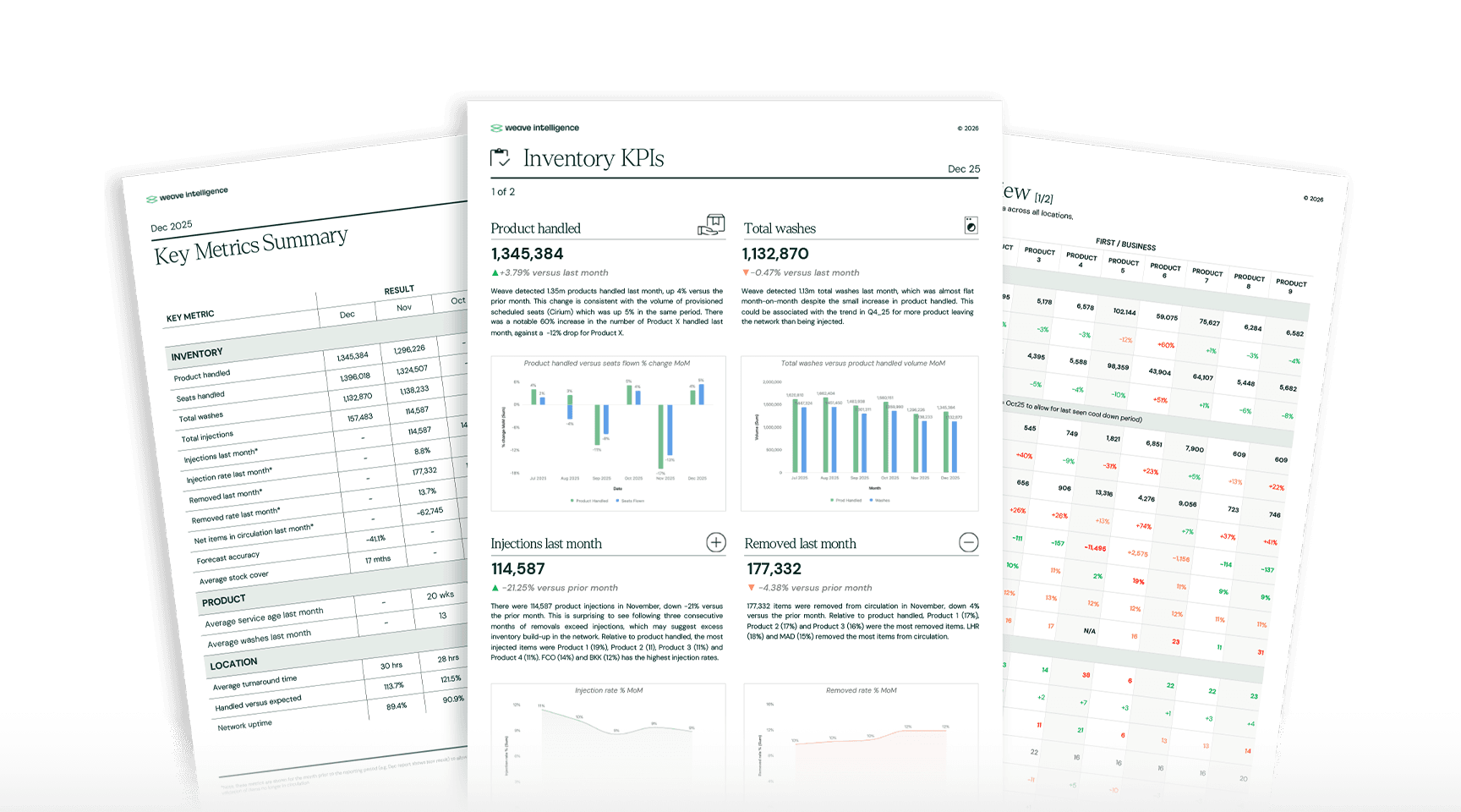 Weave utilises a range of different technologies and readers in laundries, cabin cleaners, airline warehouses and catering facilities to track product movements.