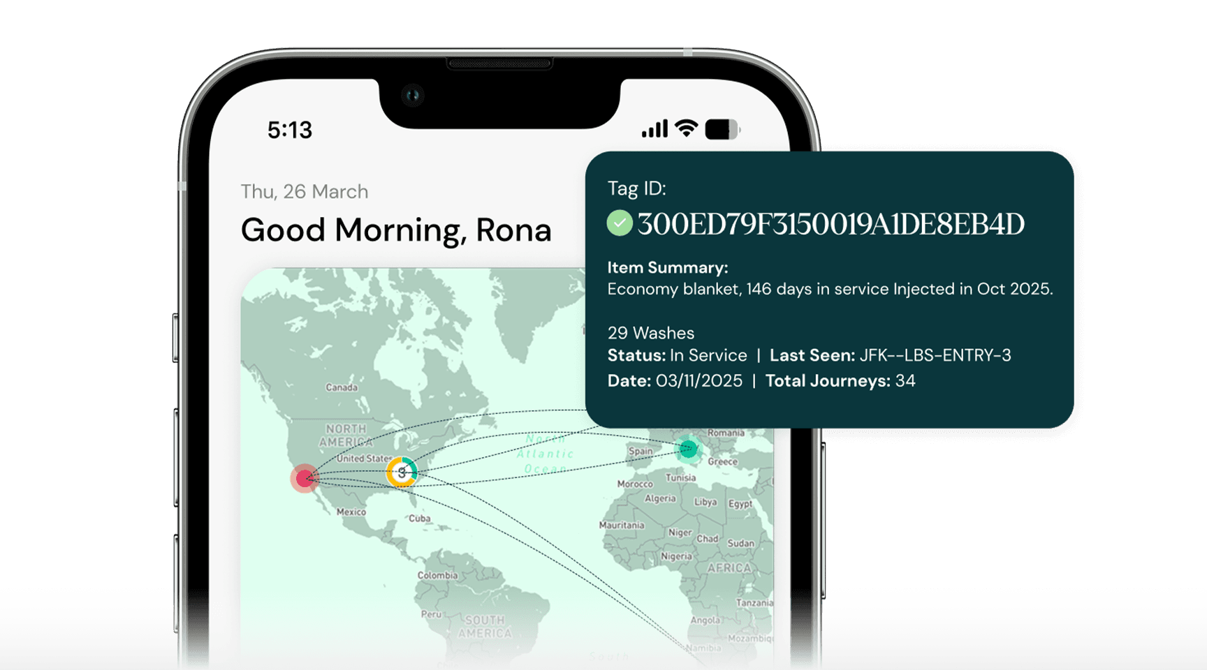 Weave uses small RFID transponder tags sewn into textile items at the the point of manufacture to deliver global real-time tracking of every single item.